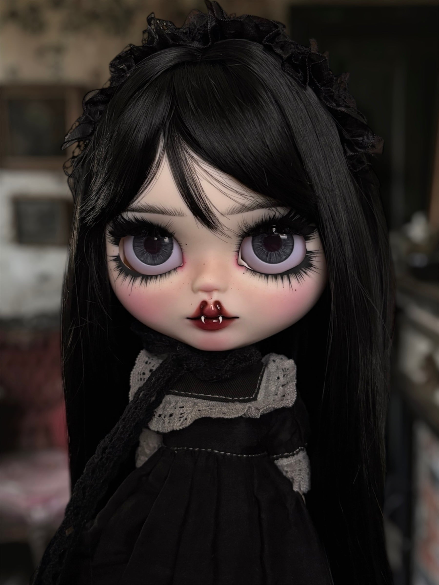 Alice, a custom factory Blythe doll. She is an art doll & may have slight imperfections. All of her customization is done by me (dollhouseoddities) She is not meant to be heavily played with/ is not for children. This customs was given a wig, please handle gently. All dolls will travel with the full outfit in photos & extra pairs of changeable hands.